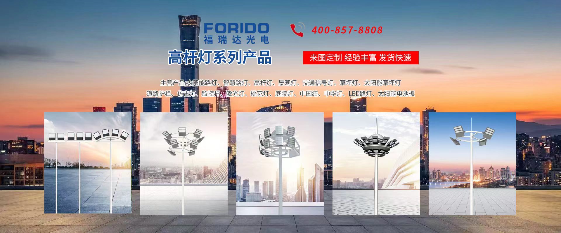揚(yáng)州福瑞達(dá)光電科技有限公司位于淮左名都?xì)v史文化名城、中國(guó)路燈制造基地?fù)P州市北郊菱塘工業(yè)園,公司占地面積76000平方米,注冊(cè)資金10518萬(wàn)元,擁有高級(jí)技術(shù)嫻熟的員工280多人,擁有大型折彎?rùn)C(jī)、激光切割、數(shù)控注塑機(jī)、壓鑄機(jī)、自動(dòng)埋弧焊、氣焊、彩色粉末靜電噴塑等大型自動(dòng)化設(shè)備,我公司是一家集設(shè)計(jì)、研發(fā)、生產(chǎn)、銷售、施工安裝服務(wù)為一體的戶外交通照明產(chǎn)品制造商,主要生產(chǎn)智慧路燈、太陽(yáng)能路燈、LED路燈、高桿燈、景觀燈、交通信號(hào)燈、交通標(biāo)志牌、通信鐵塔、路跨鋼結(jié)構(gòu)、公交站臺(tái)、太陽(yáng)能光伏組件、景點(diǎn)亮化、樓宇亮化工程的設(shè)計(jì)施工等。公司秉承開(kāi)拓創(chuàng)新、銳意進(jìn)取、精誠(chéng)服務(wù)的企業(yè)精神,堅(jiān)持以“誠(chéng)信為本、技術(shù)為先、服務(wù)是金”的合作理念,我們憑借先進(jìn)的制造工藝、優(yōu)質(zhì)的產(chǎn)品質(zhì)量、合理的市場(chǎng)價(jià)格和完善的售后服務(wù)贏得了廣闊的市場(chǎng)和客戶的信賴。 我公司已通過(guò)ISO9001質(zhì)量體系認(rèn)證、ISO14001環(huán)境管理體認(rèn)證,CQC產(chǎn)品認(rèn)證,中國(guó)節(jié)能產(chǎn)品認(rèn)證,通過(guò)“CCC”強(qiáng)制性產(chǎn)品認(rèn)證,具有市政總承包,照明,交安,設(shè)計(jì)等資質(zhì)···